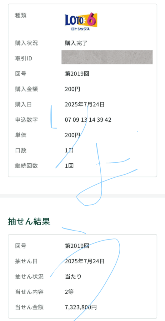 ロト6 2等 7,323,800円的中🎯