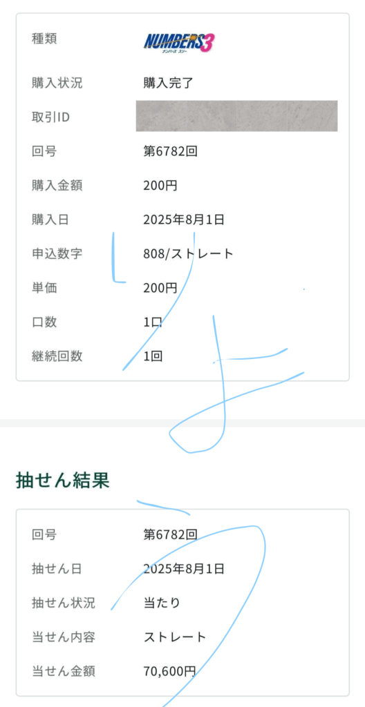 ナンバーズ3 ストレート 70,600円的中🎯