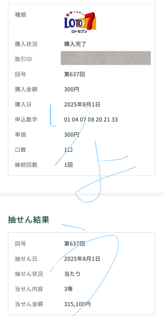 ロト7 3等 315,100円的中🎯
