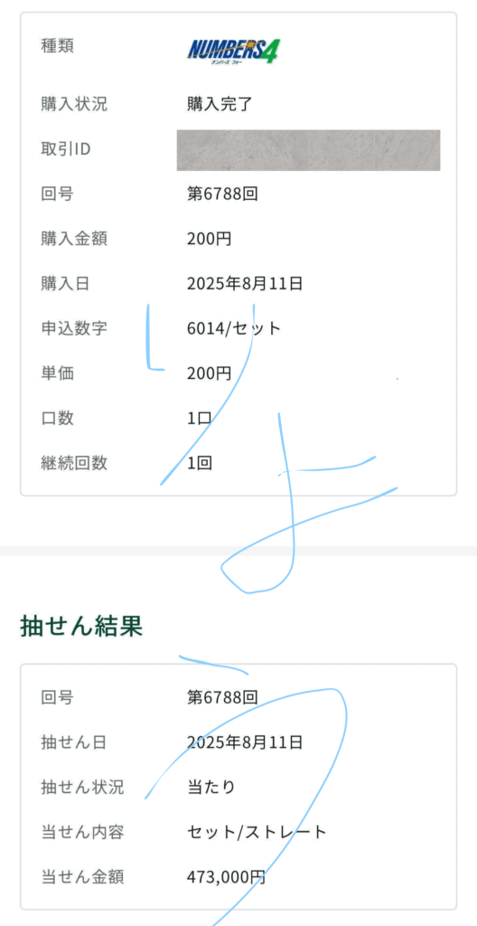 ナンバーズ4 セットストレート 473,000円的中🎯
