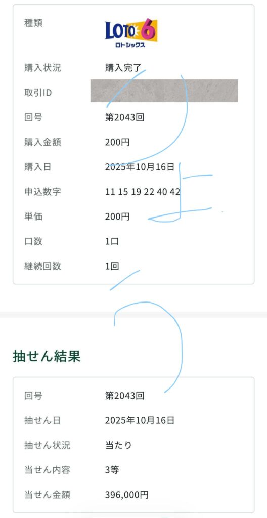 ロト6 3等 396,000円的中🎯