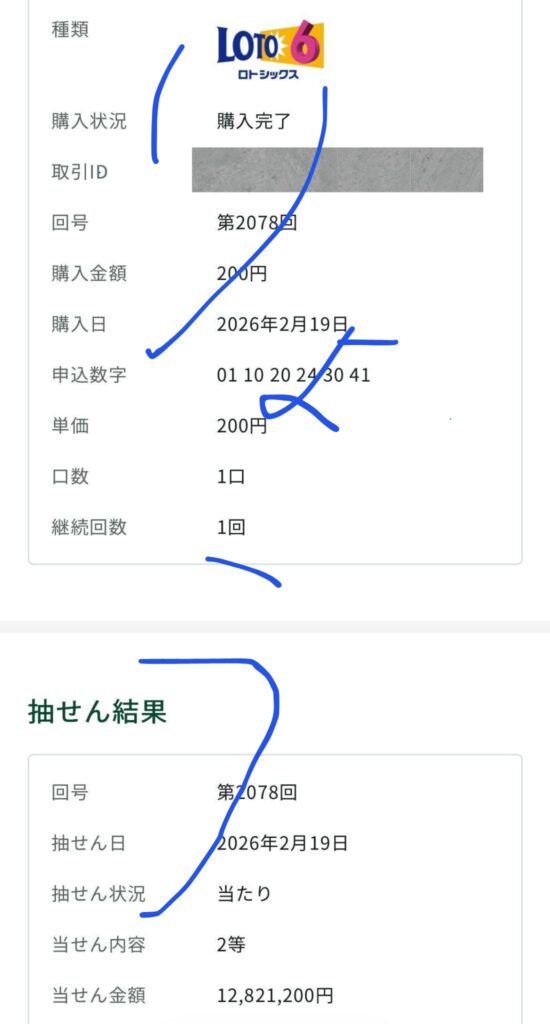 ロト6 2等 12,821,200円的中🎯