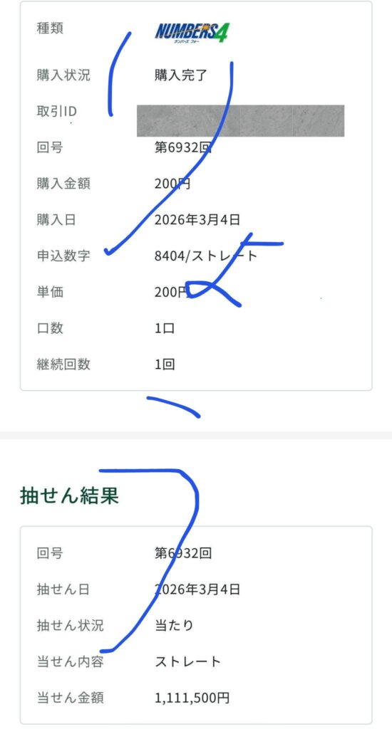 ナンバーズ4 ストレート 1,111,500円的中🎯