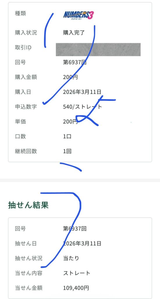 ナンバーズ3 ストレート 109,400円的中🎯