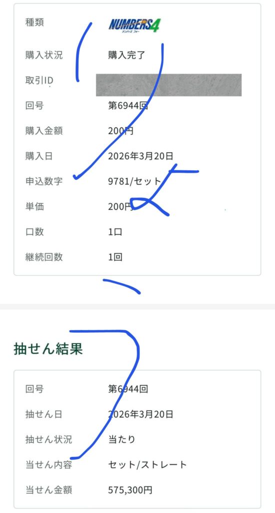 ナンバーズ4 セットストレート 75,300円的中🎯