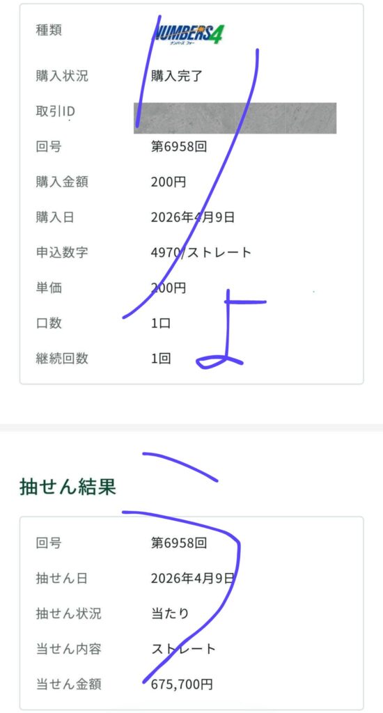 ナンバーズ4 ストレート 675,700円的中🎯