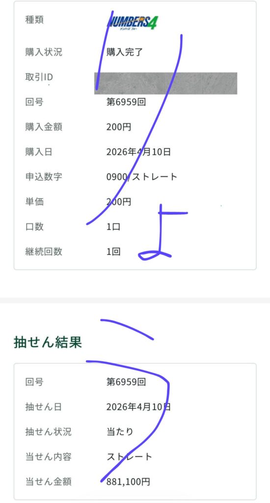 ナンバーズ4 ストレート 881,100円的中🎯