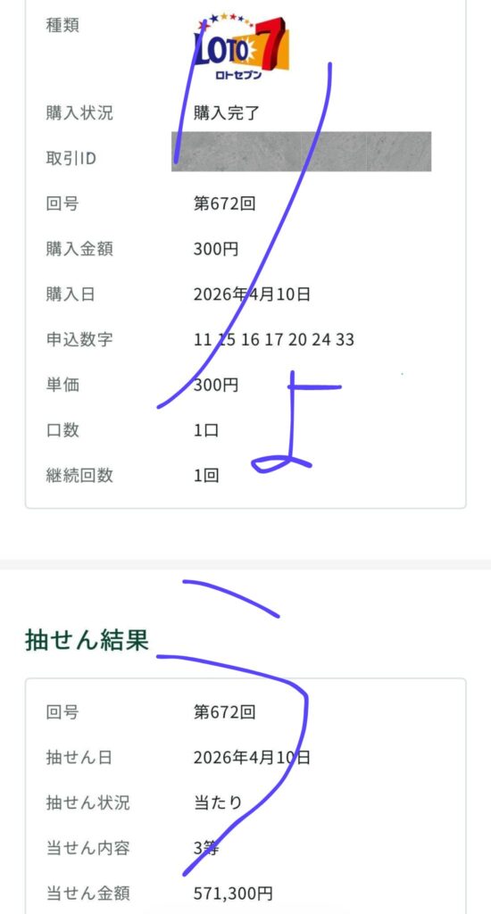 ロト7 3等 571,300円的中🎯
